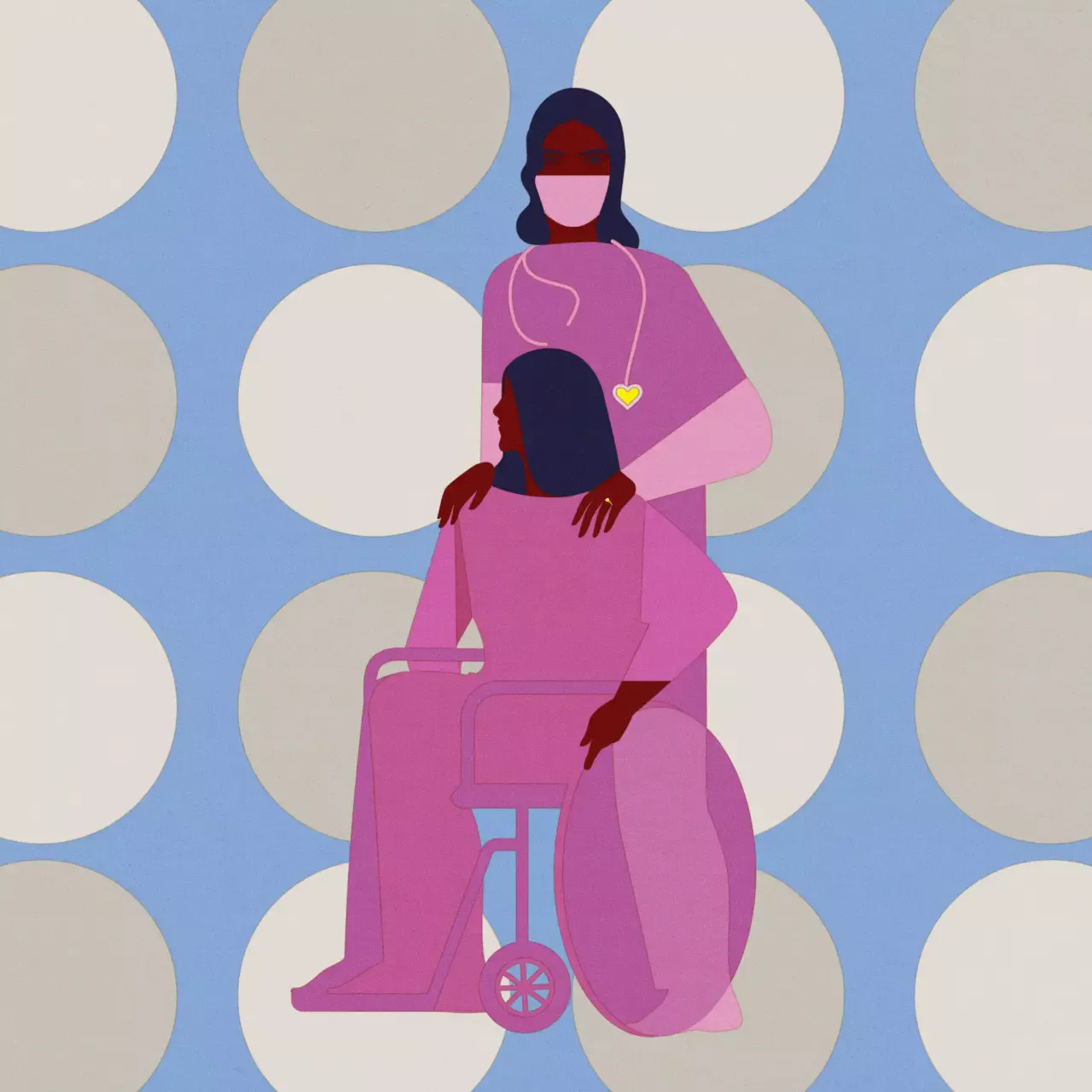 Pavé wrap ring on pinky finger by Kinn—bold diamond statement in recycled 14K gold.